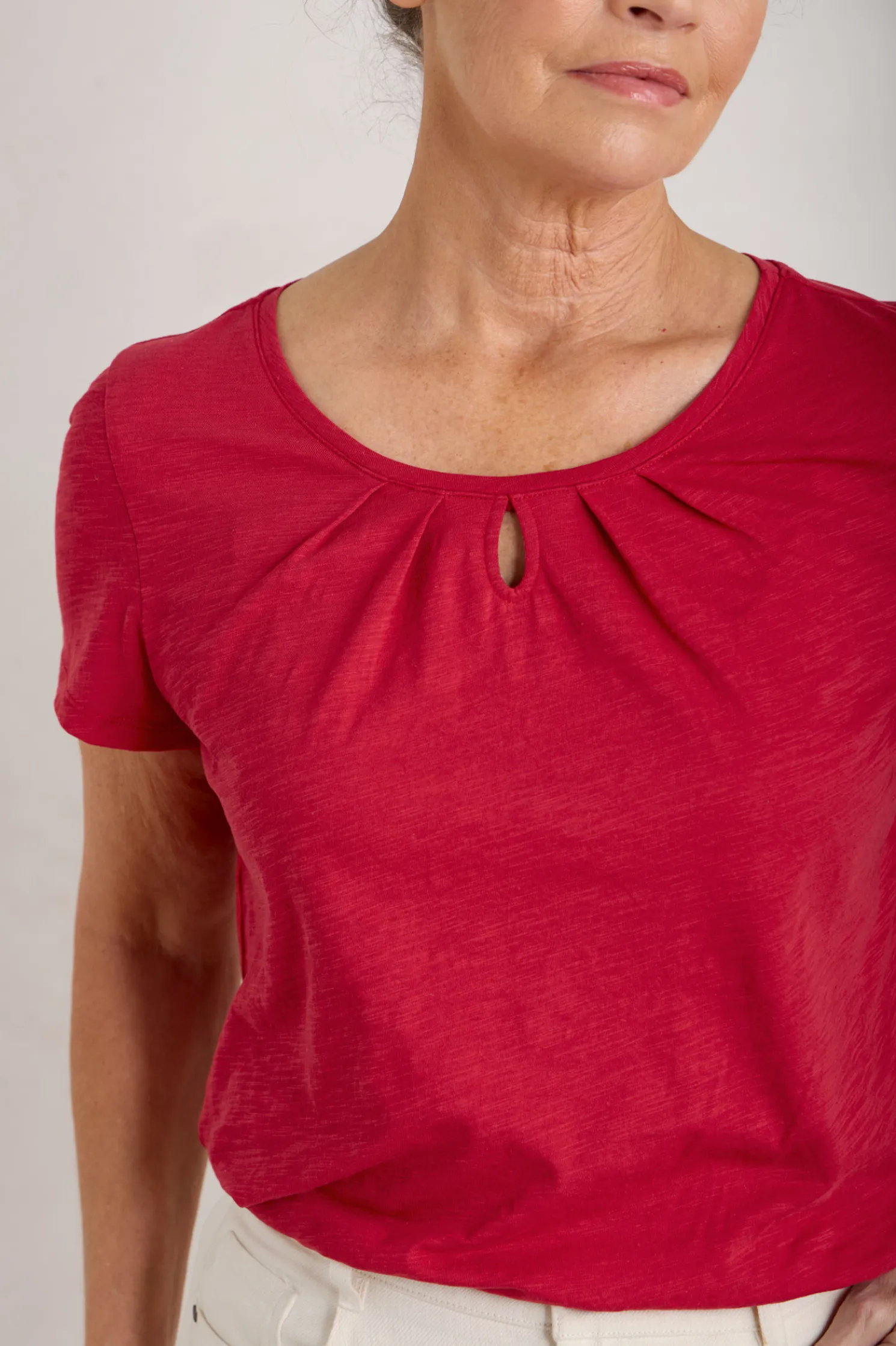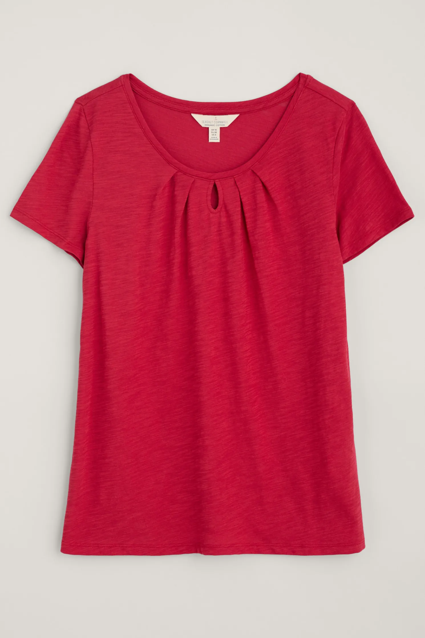 As Comfortable As A T-Shirt, With Elevated Details. This Easy-To-Wear Summery Scoop Neck Jersey Top Has Pintucks And A Keyhole Detail At The Neckline. Perfect With Denim Or Linen Crops.