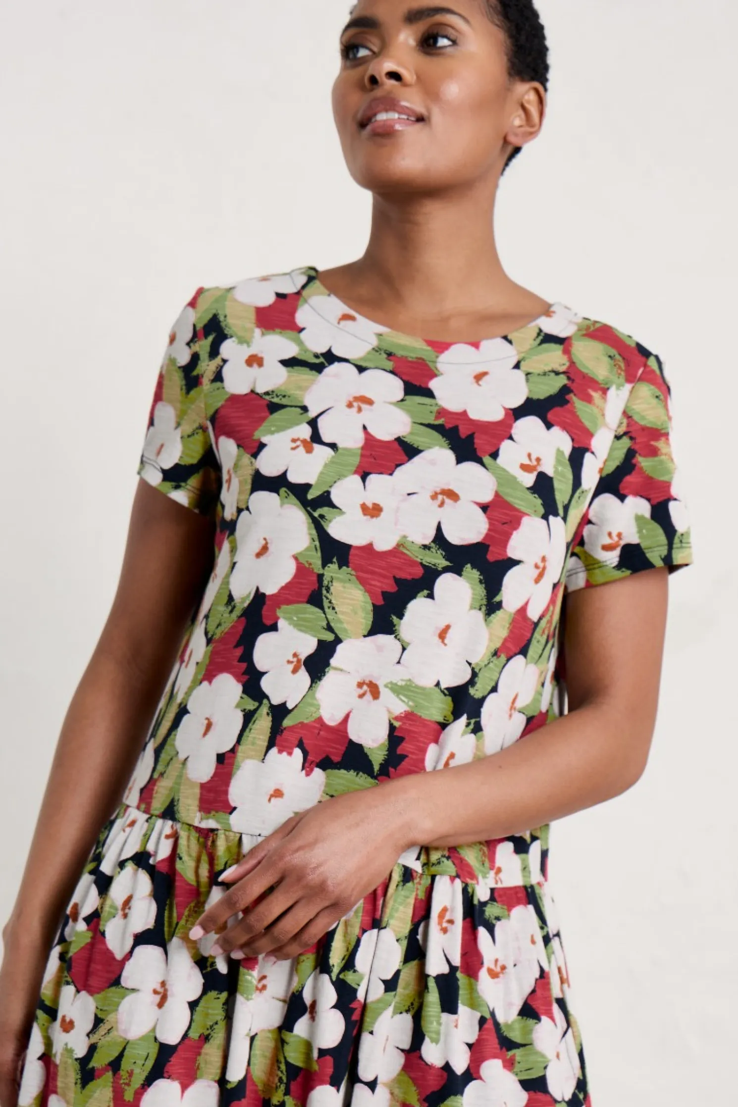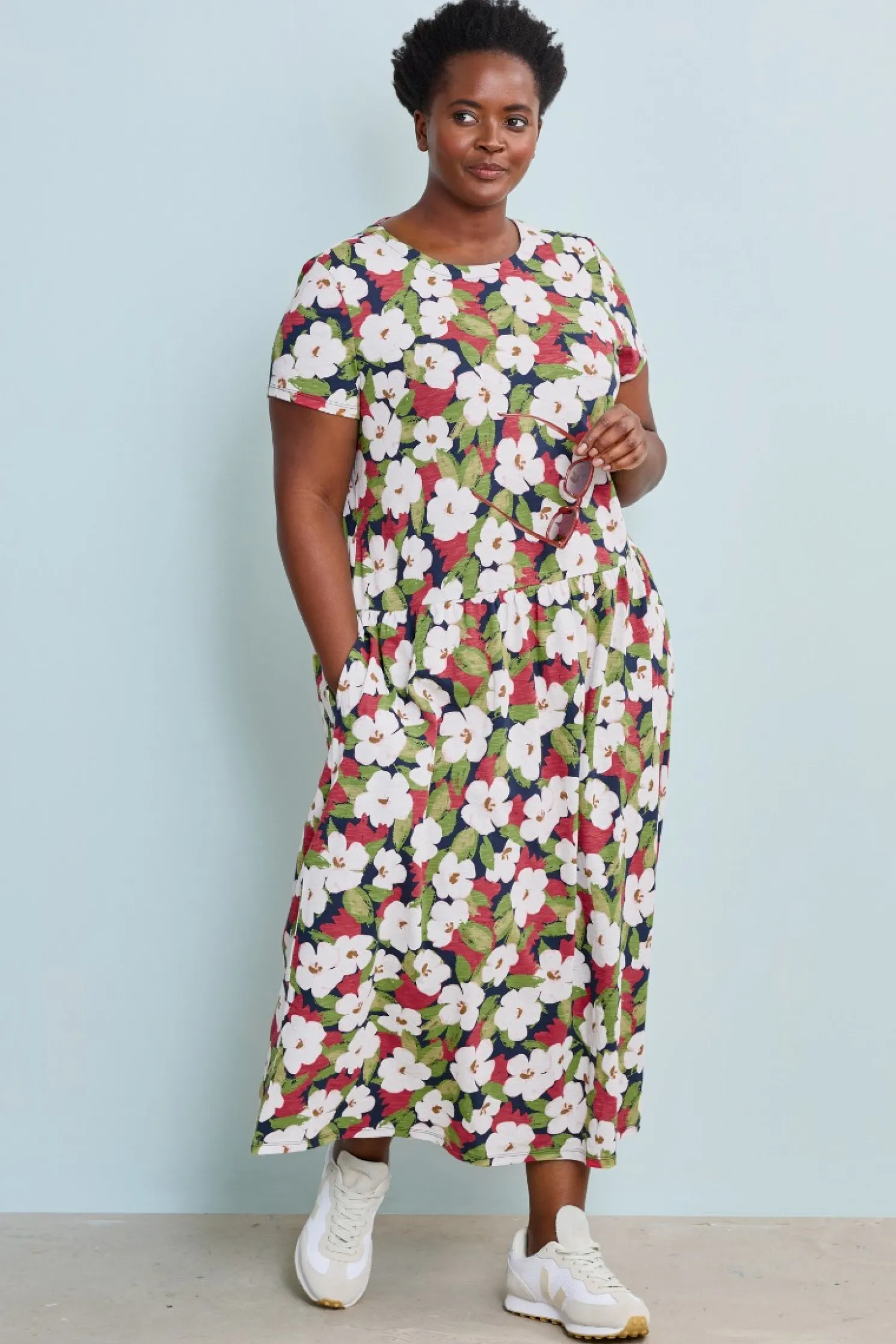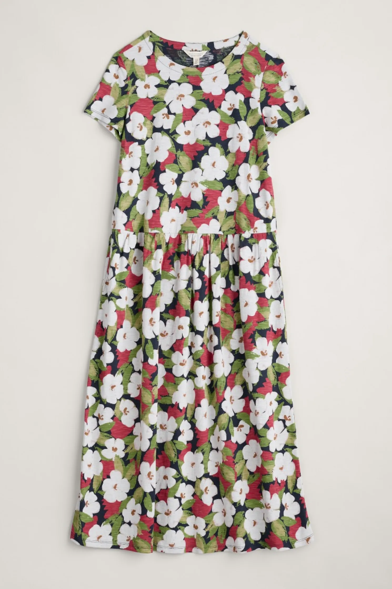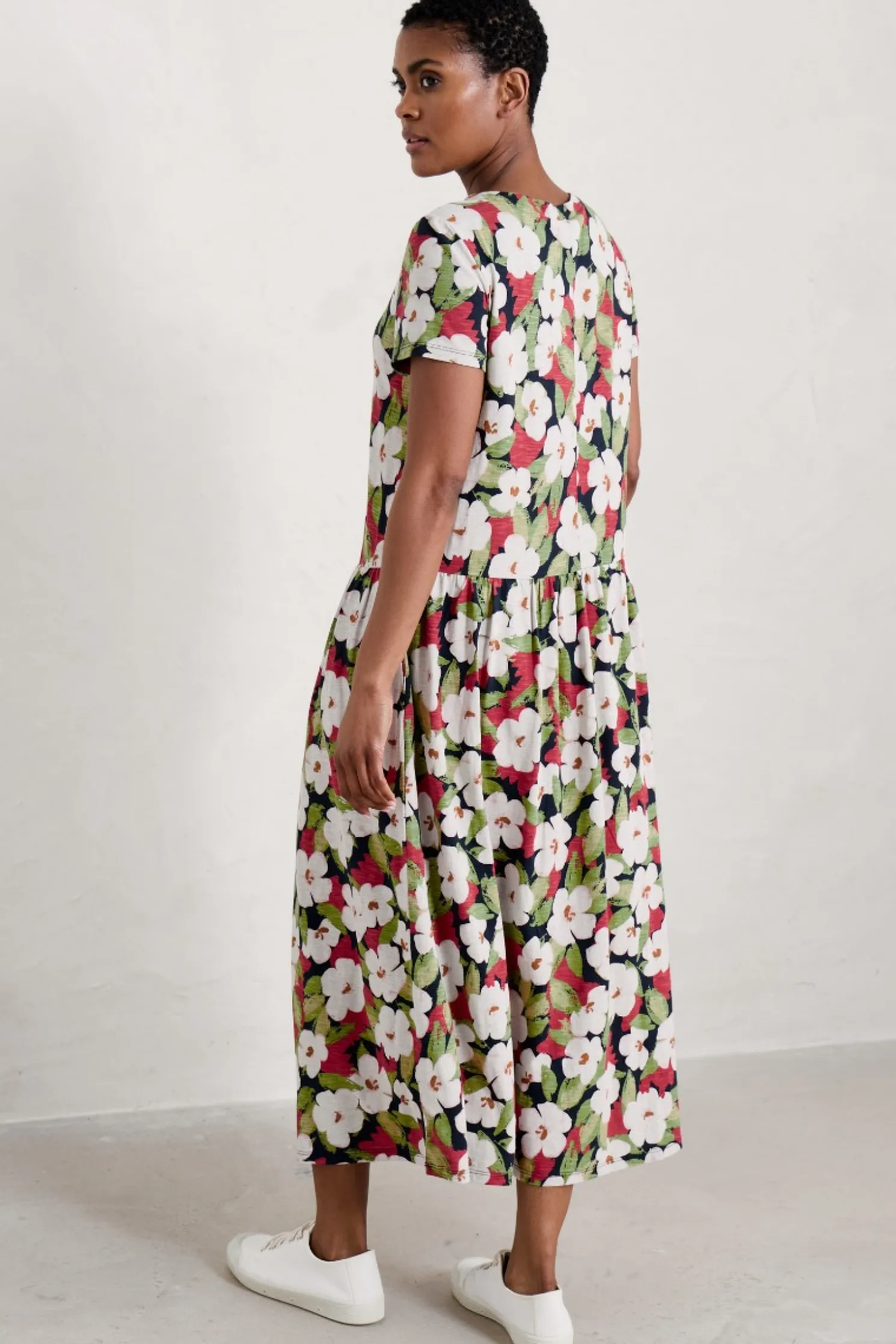 An Easy-To-Style Printed Dress Made From Breathable Organic Cotton Jersey, We Love The Simplicity Of Its Shape: Short T-Shirt Sleeves And A Relaxed Dropped Waist With Little Gathers.