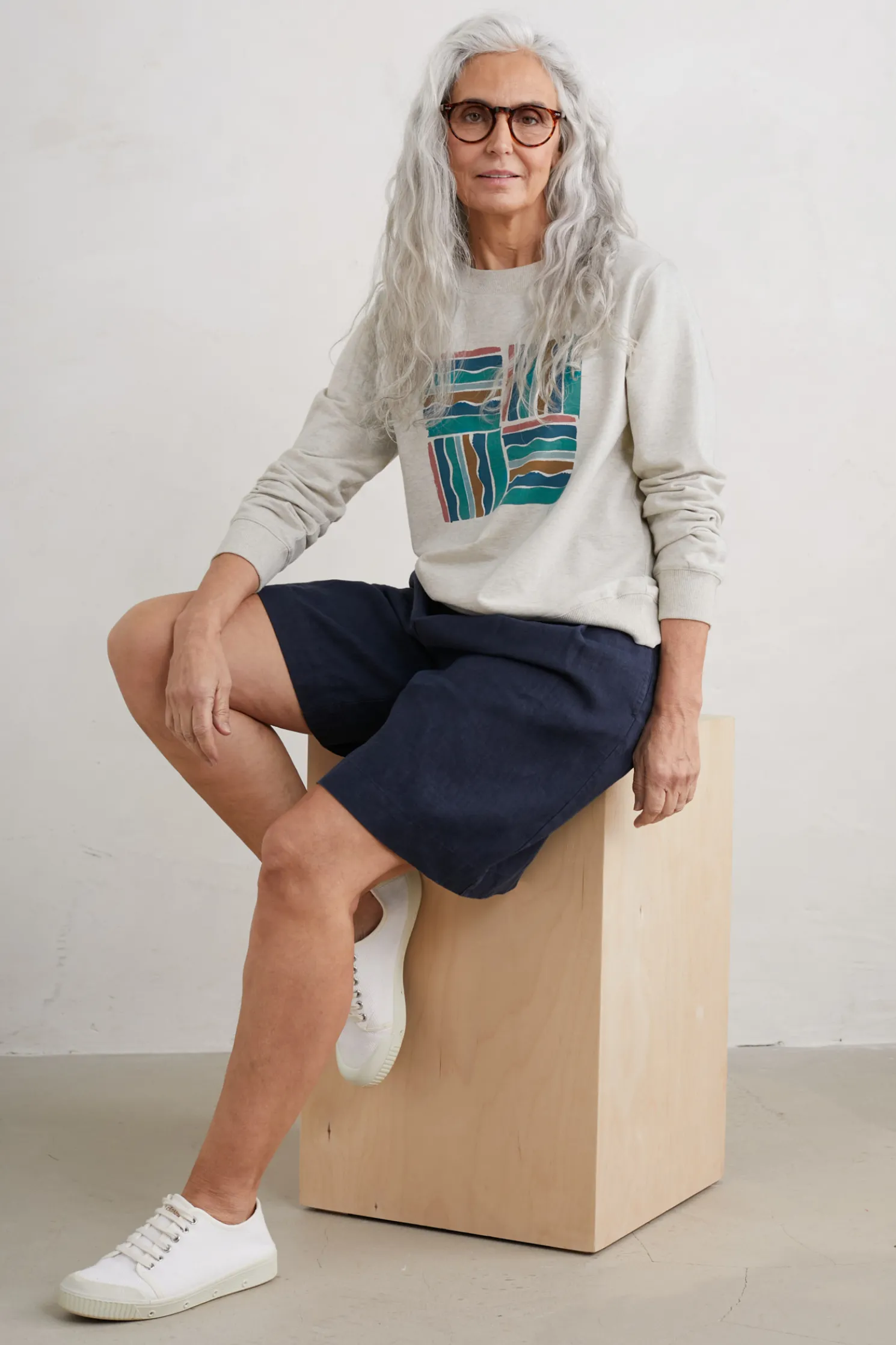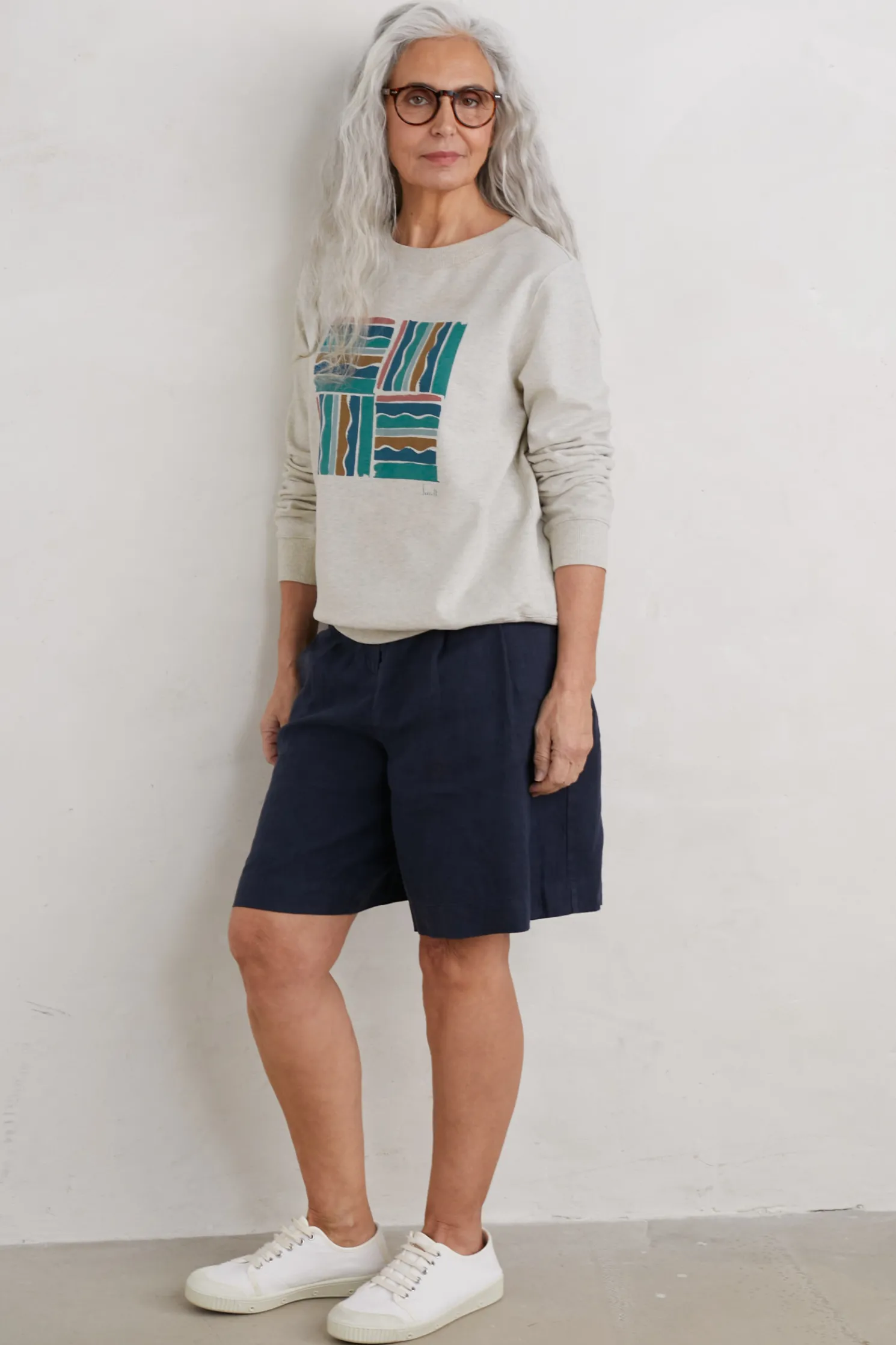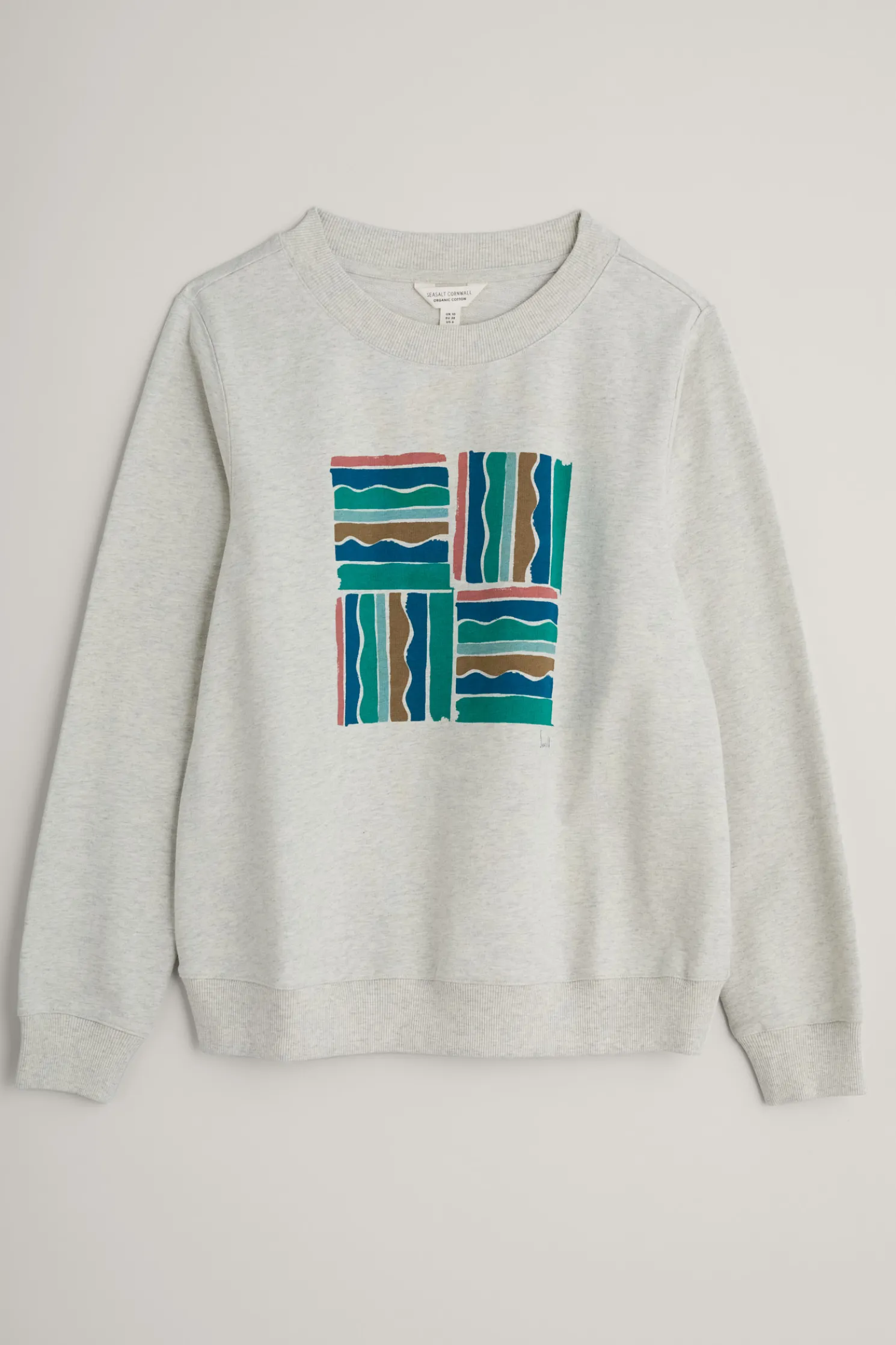 A Vibrant Organic Cotton Crew Neck Sweatshirt, With A Pattern Created By Our In-House Designers Inspired By Cornish Coastal Shapes And Flowers. Perfect For Bringing A Bit Of Colour And Comfort To Days On The Go.