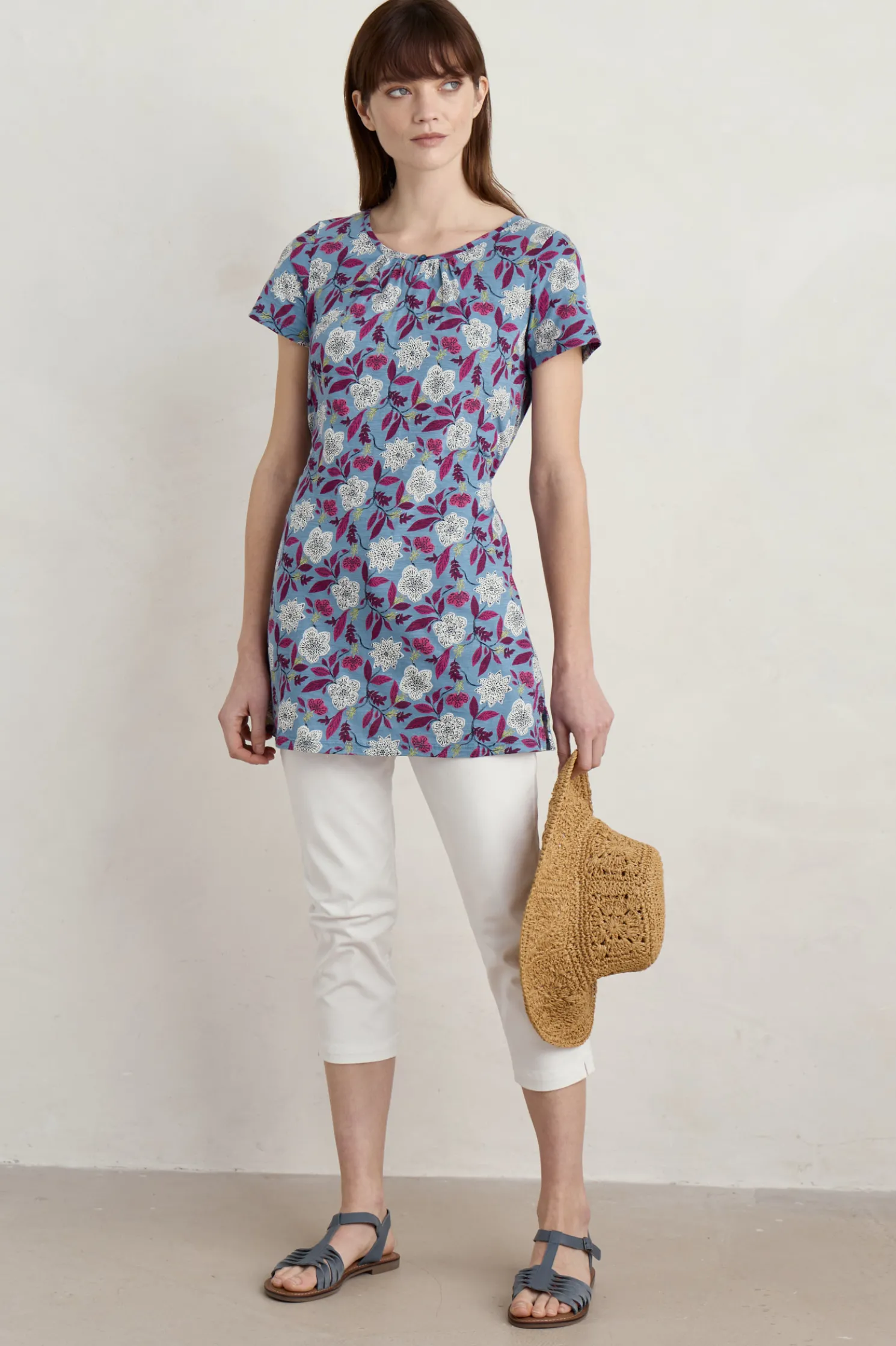 Our Simple, Short-Sleeved Countryside Tunic Has Flattering Pin Tucks, A Slightly Gathered Neckline And A Tie So You Can Cinch In The Waist. Equally Lovely Over Leggings Or Wide Leg Trousers.