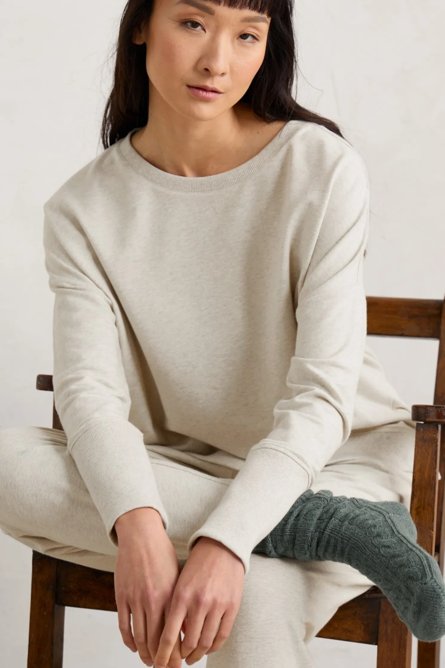 Soft Organic Cotton Sweatshirt. The Dropped Shoulders Give It An Easy, Comfortable Shape, While Deep Ribbed Cuffs Add A Stylish Shape. The Boat Neck Makes It Easy To Layer For Weekends At Home Or By The Sea.
