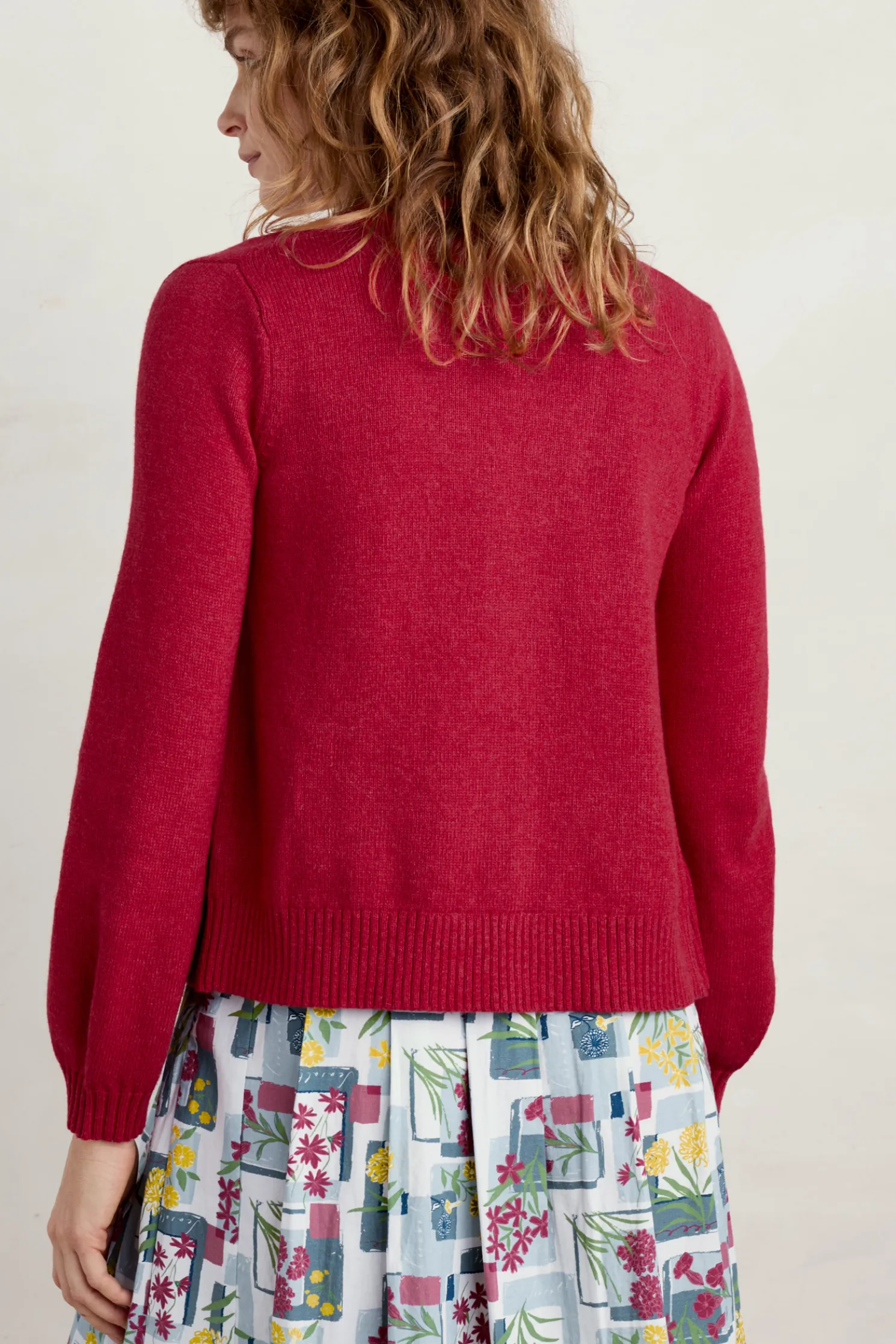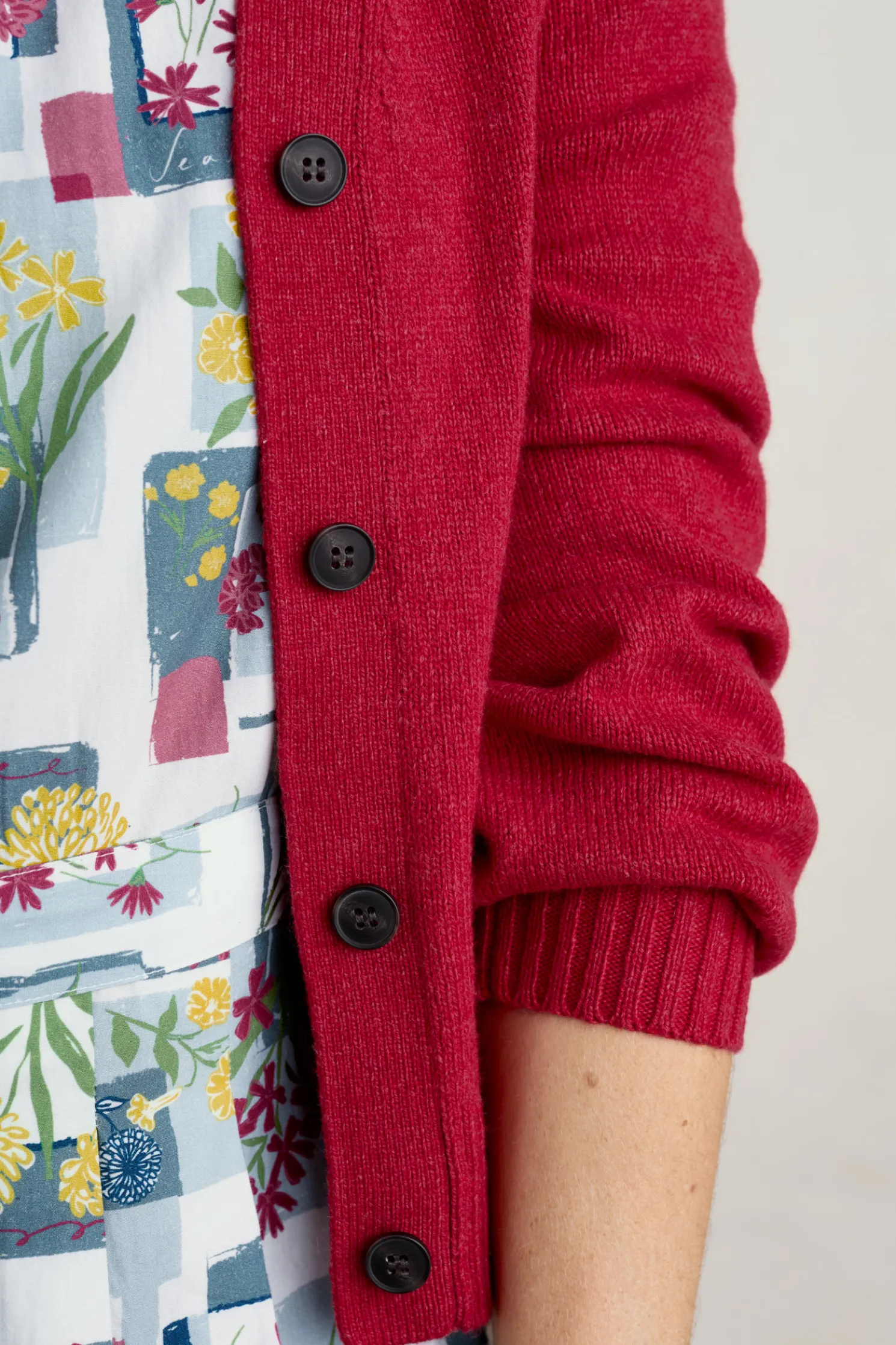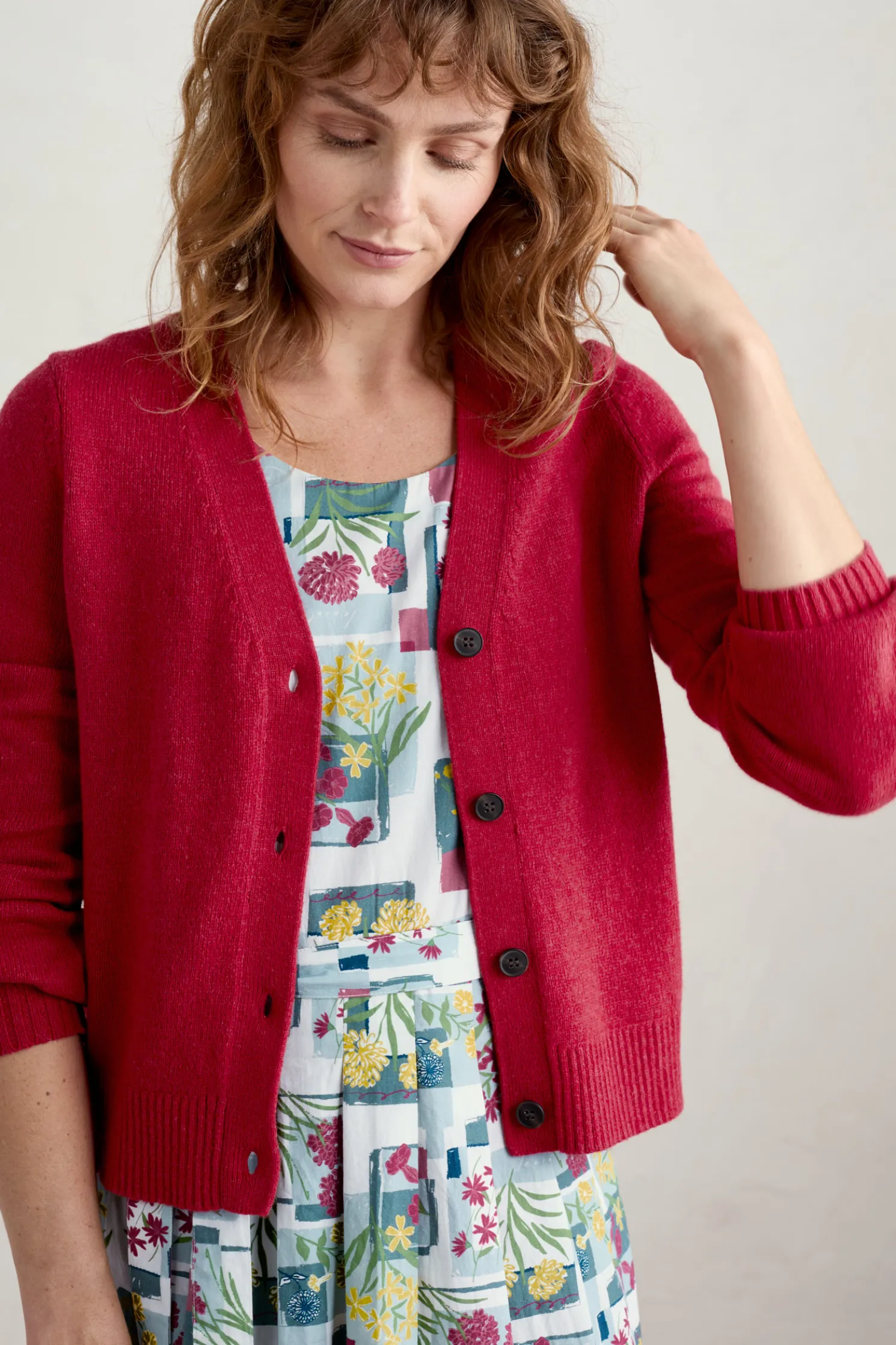 A Stylish V-Neck Cardigan With Subtle Blouson Sleeves, In An Organic Cotton Yarn Blend Which Gives A Lovely Melange To Our Carefully Chosen Coastal Colours. The Perfect Layer For Summer Evenings.