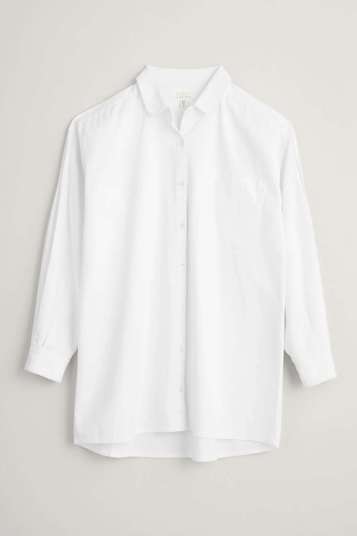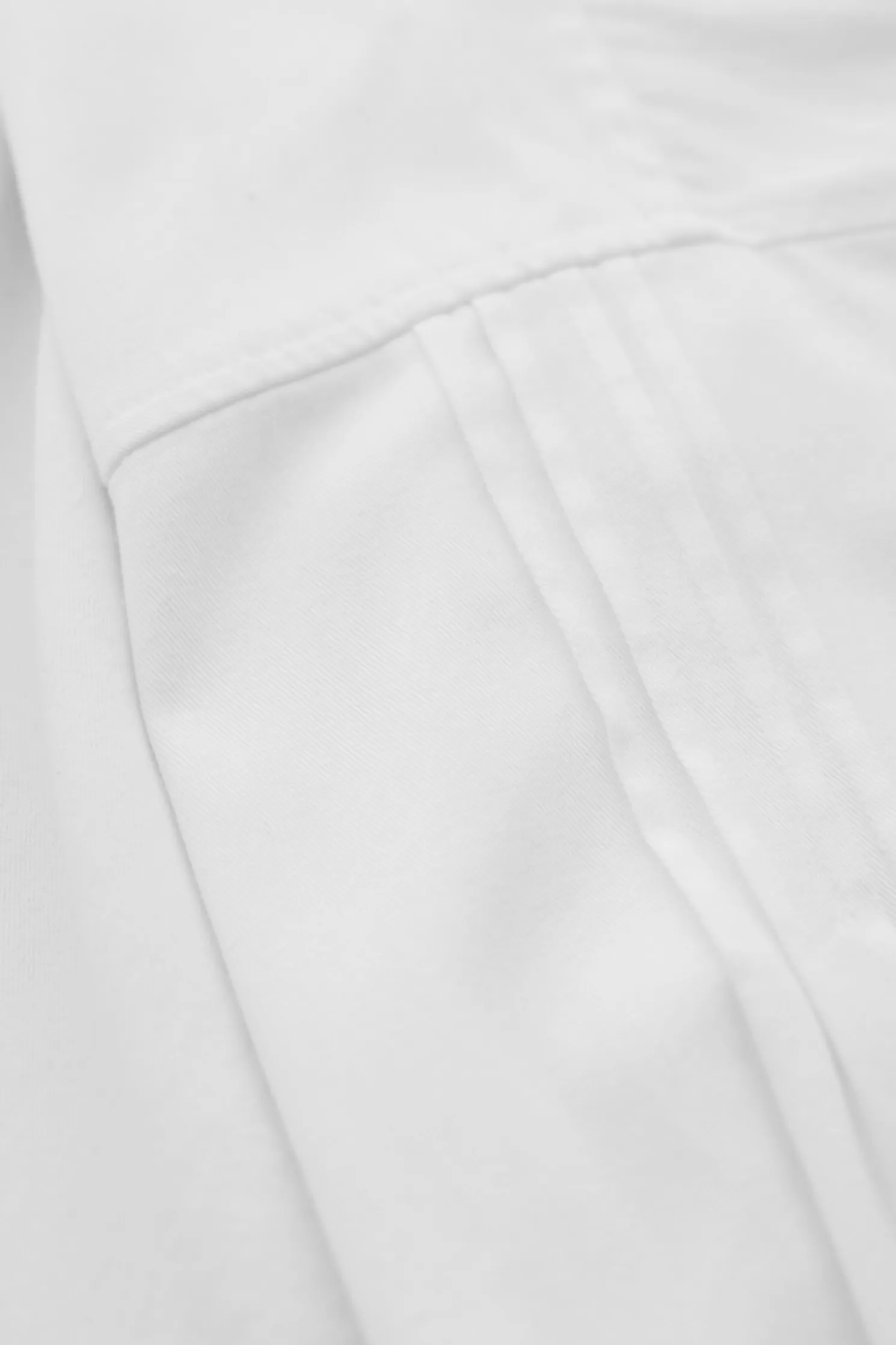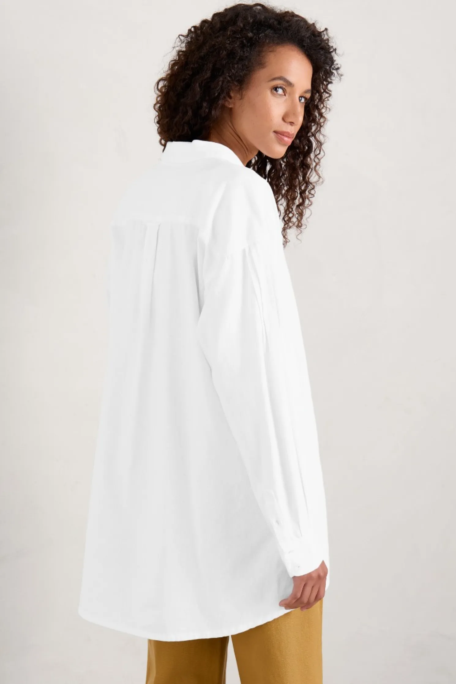 A Classic White Shirt Made From Organic Cotton, With Subtle Details That Give It A Gentle Drape. Little Pintucks At The Shoulders And Cuffs Give Soft Volume Through The Sleeve, And The Dipped Hem Is Perfect For Layering.