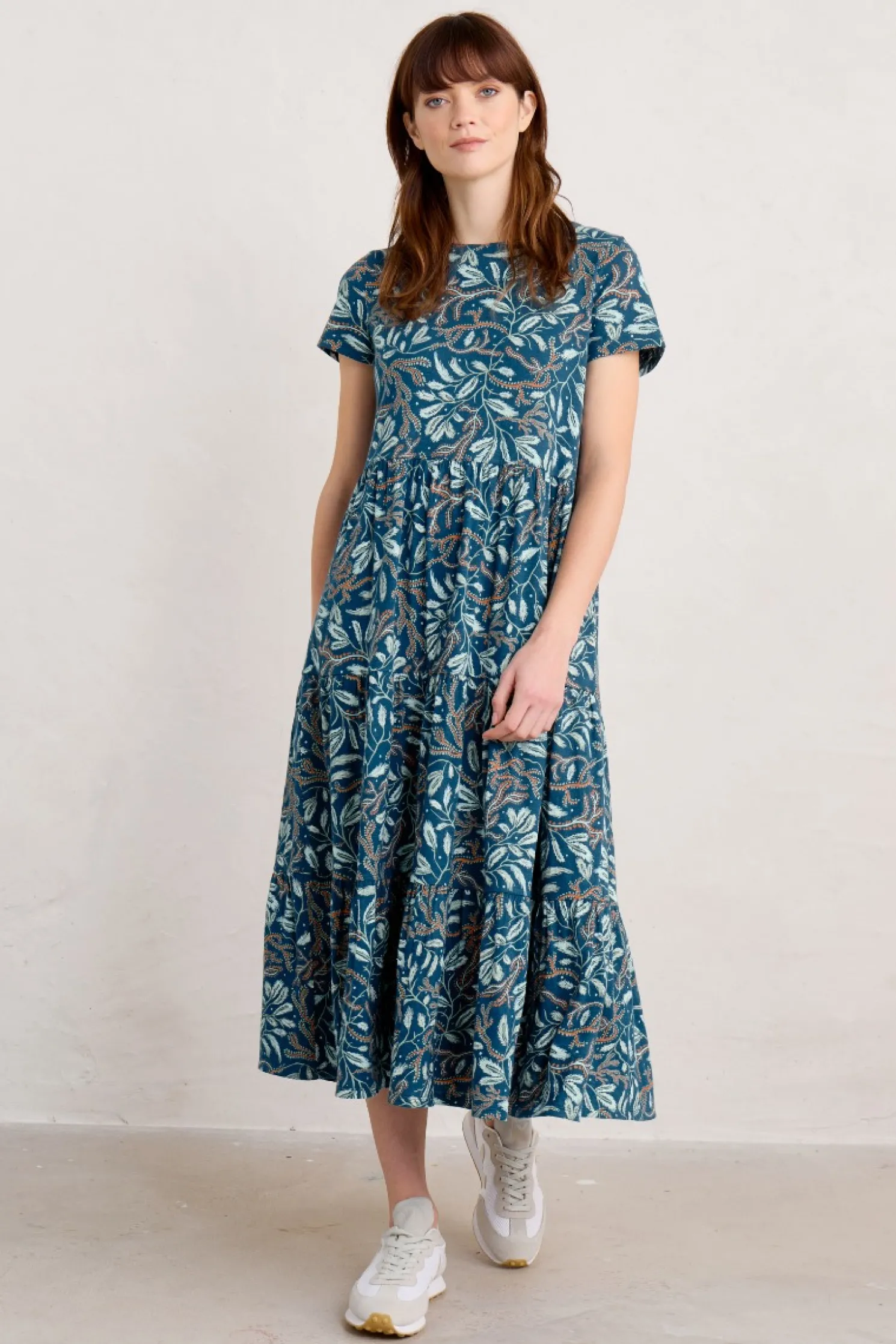 A Short-Sleeved Version Of Our Popular, Easy-Fit Line Strokes Dress, Which Has Gently Gathered Tiers That Create A Relaxed A-Line Shape. The Perfect Jersey Style For Summer Days By The Sea Or In The City.