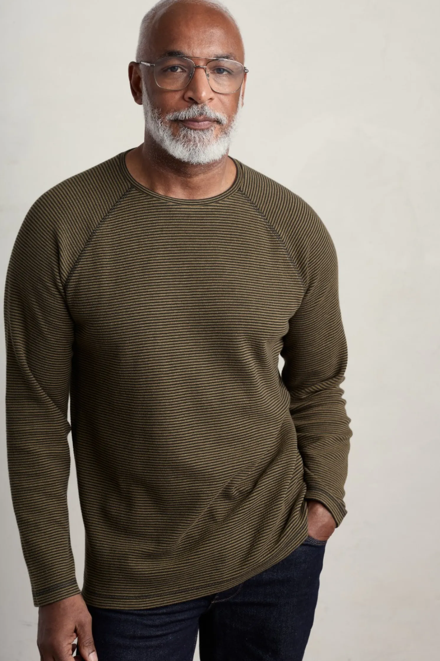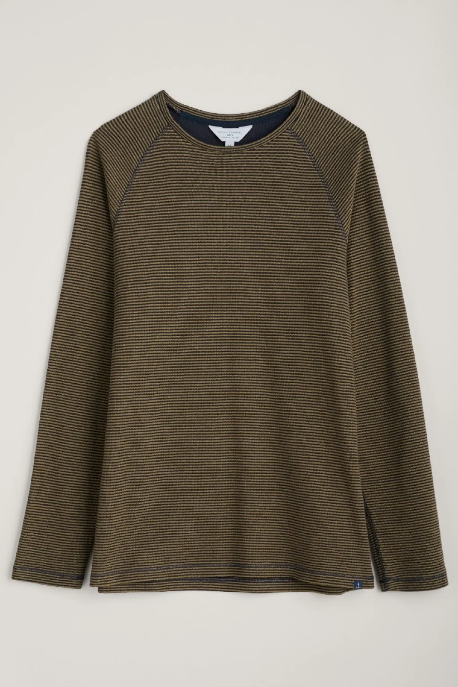 A Really Useful Top For Layering, With A Subtle Textured Stripe In Versatile Colours. The Raglan Sleeves Extend Across The Back, Which Highlight The Shoulders