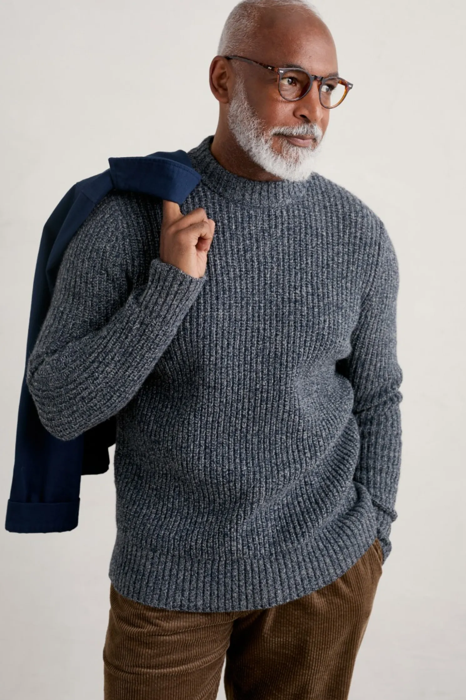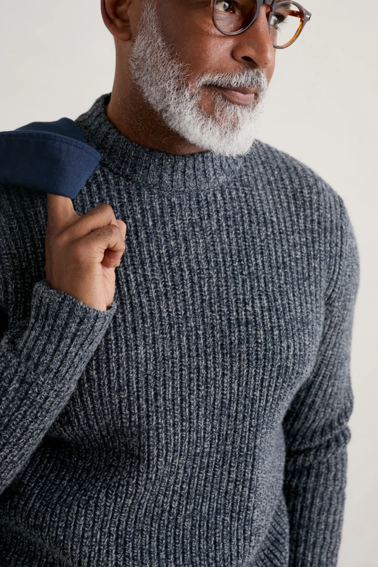 A Warm Ribbed Jumper With An All-Over Cardigan Stitch, Made From A Marled Yarn Blend Of Warm Lambswool And Recycled Nylon. A Cosy Jumper That Should Last You Season After Season.