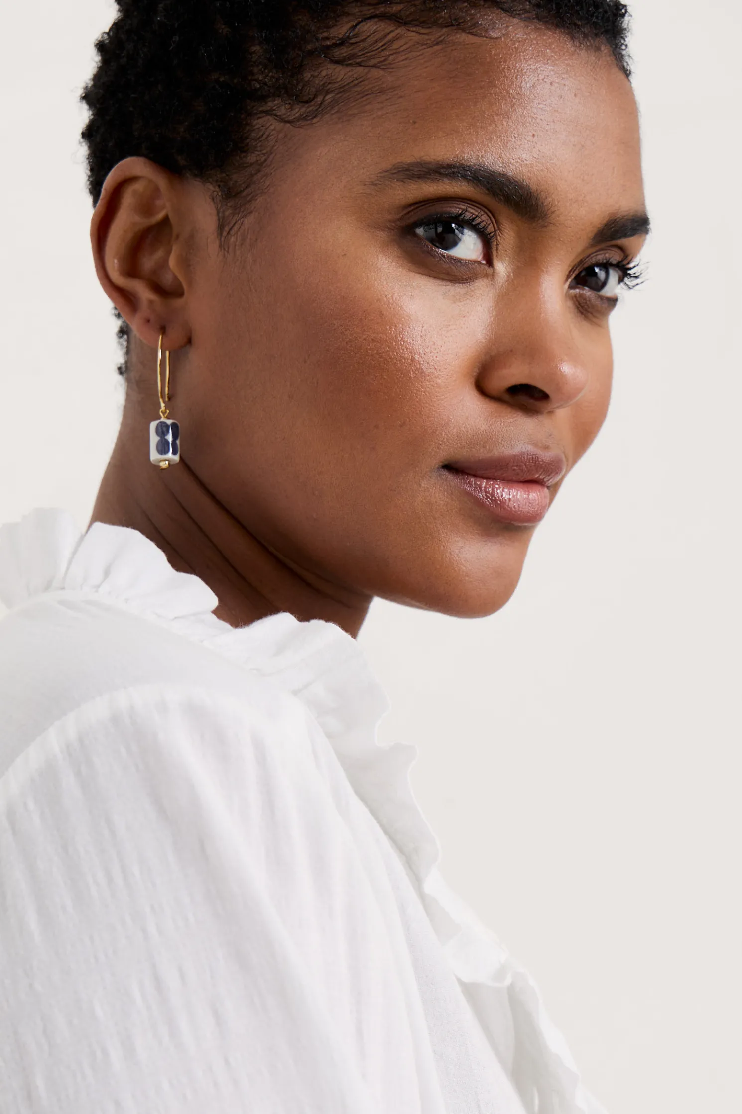 A Simple Drop Earring With A Single Bead, Stamped With Four-Petal Flowers, On A Short Gold Tone Chain Which Gives It A Lovely, Easy Movement. Pairs With Our Noon Moor Necklace Or Our Collan Necklace.