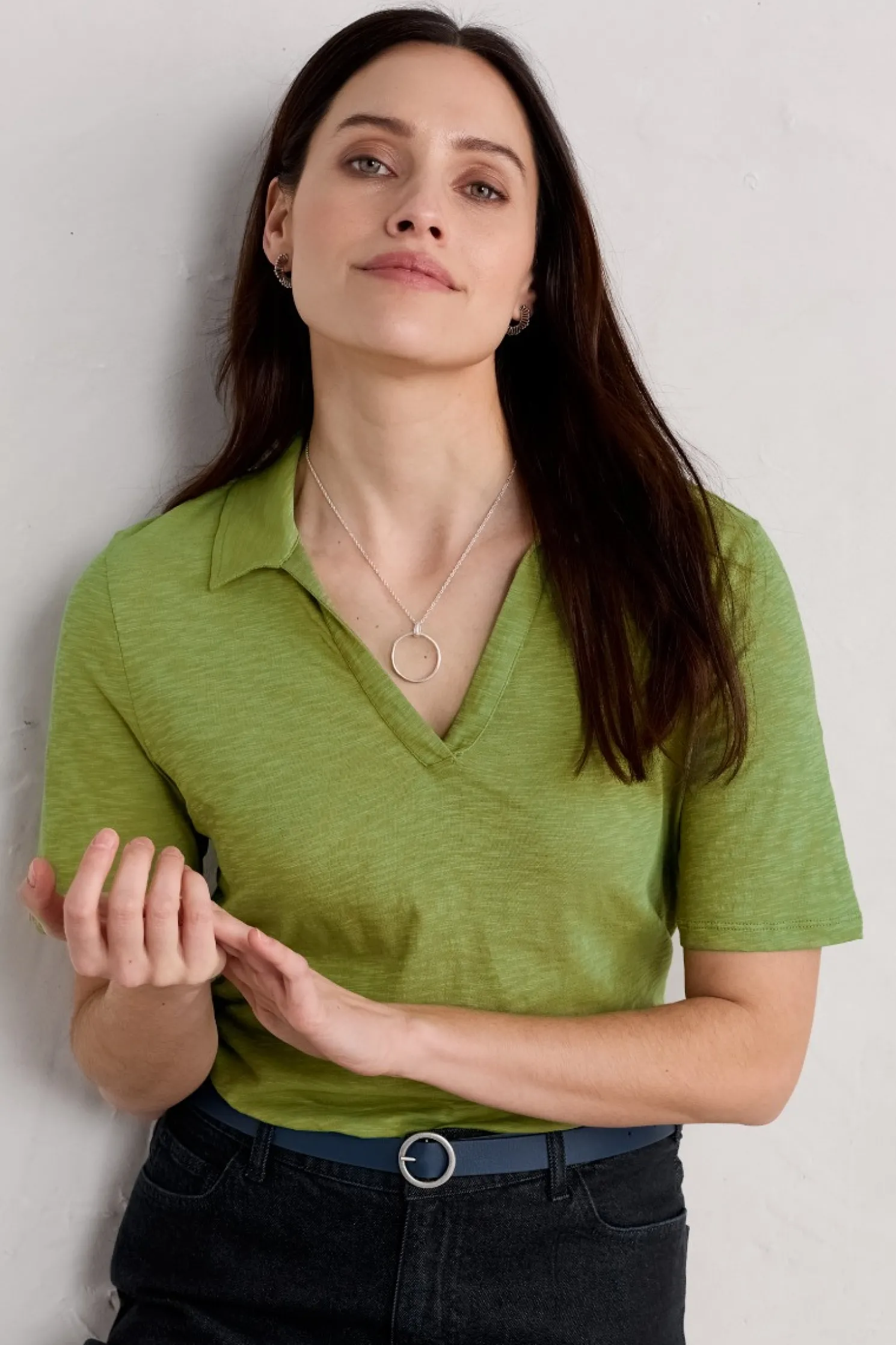 A Simple Skimming Shirt With Short Sleeves, Maritime-Inspired V-Neckline And A Soft Collar. Made From Organic Cotton Slub Which Gives A Lovely Texture To The Fabric.