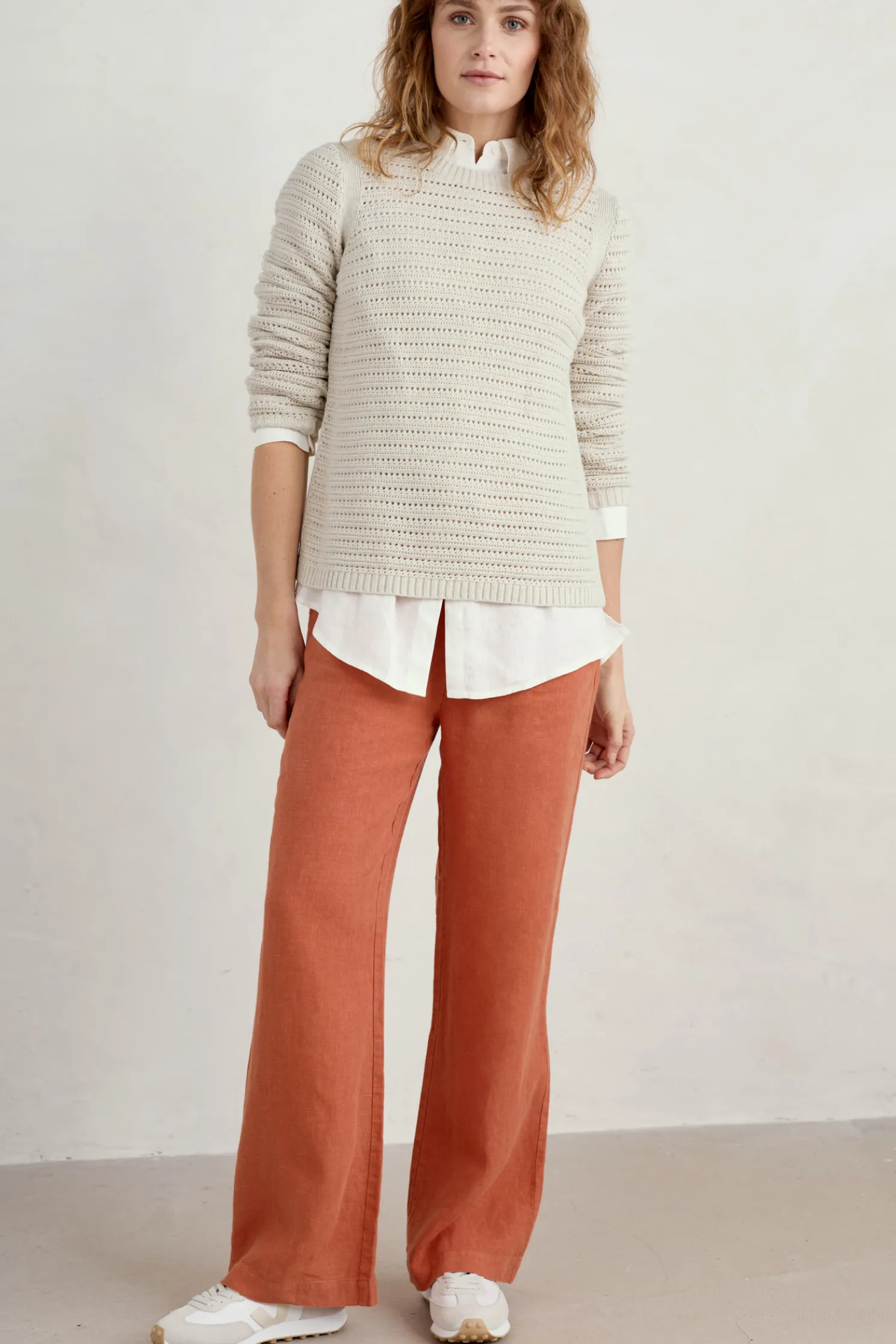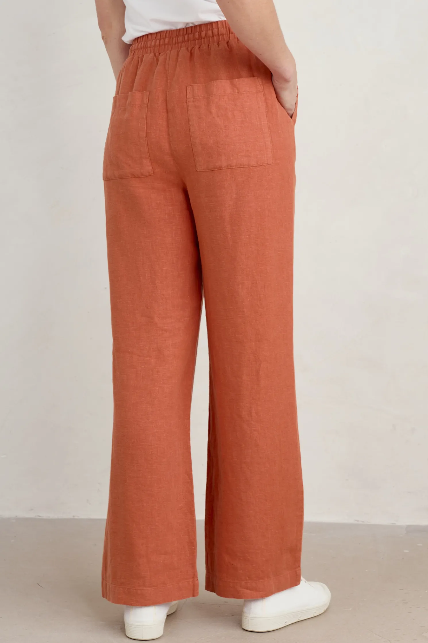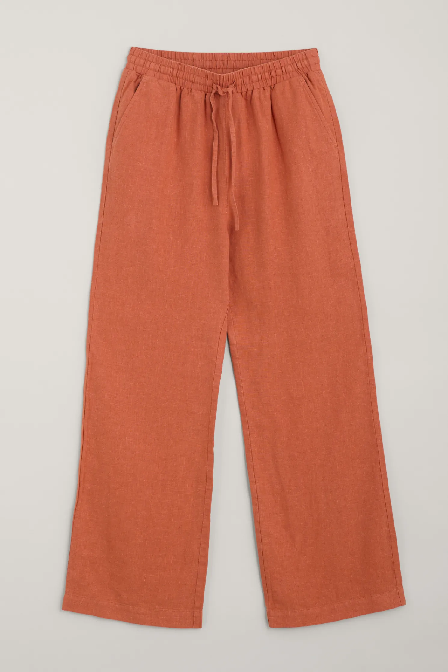 Wide Leg Linen Trousers With An Elasticated Waist And Tie Fastening. We Love How Easy These Are To Dress Up And Down, And They’Ve Been Garment-Dyed For Soft Colour Which Should Develop More Character With Every Summer.