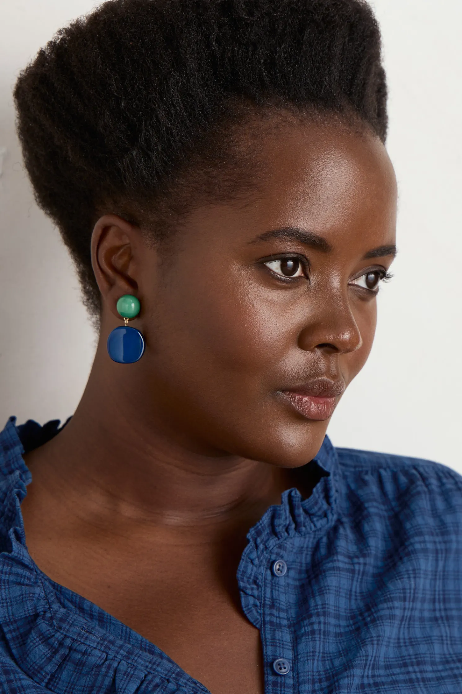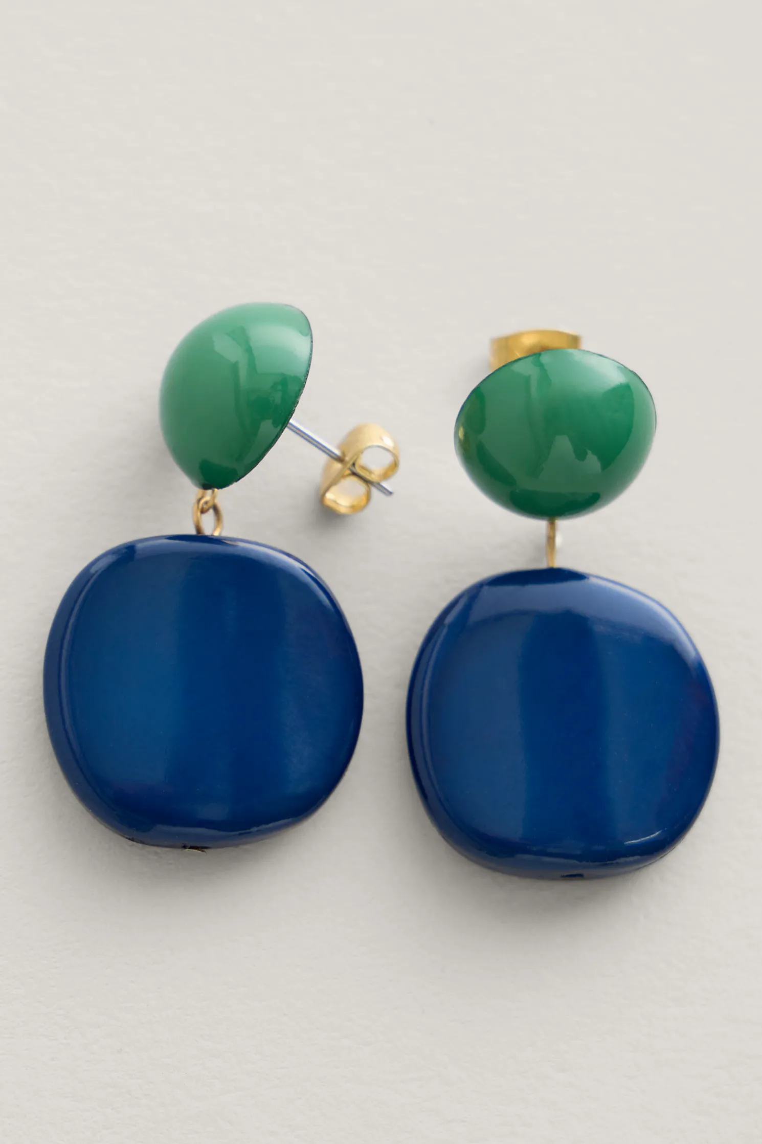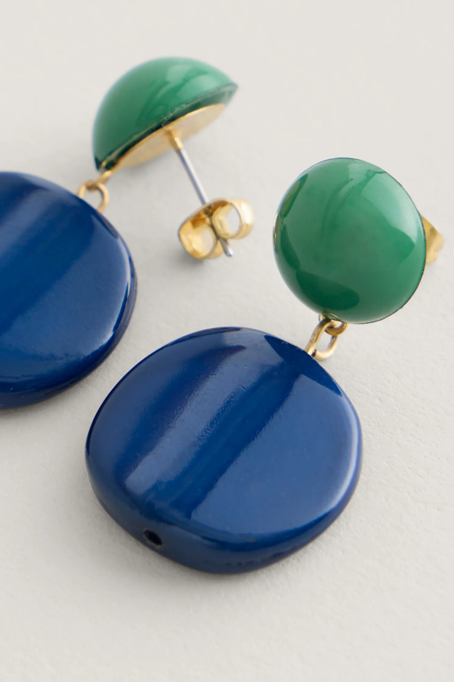 A Simple, Stylish Earring With A Round Stud And A Light Drop Bead. The Subtle Organic Shape Of The Bead And The Vibrant, Sporty Colours Are Made To Match In Effortlessly With This Season’s Clothing.