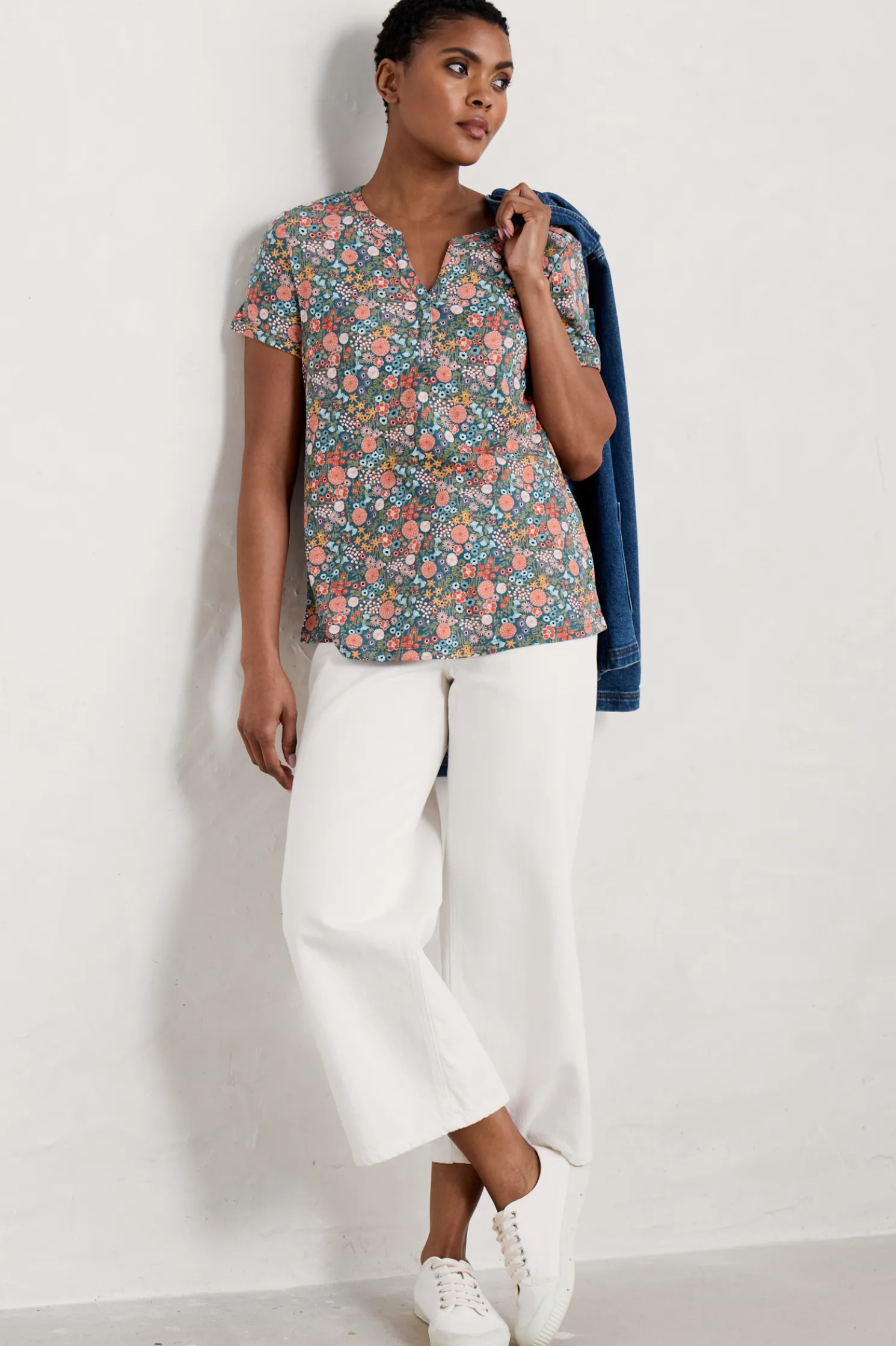 An Effortless Summer T-Shirt With A Notched Neckline And Subtle Flared Shape, Made From Soft And Breathable Organic Cotton. Perfect For Pairing With Narrow Crops And Culottes.