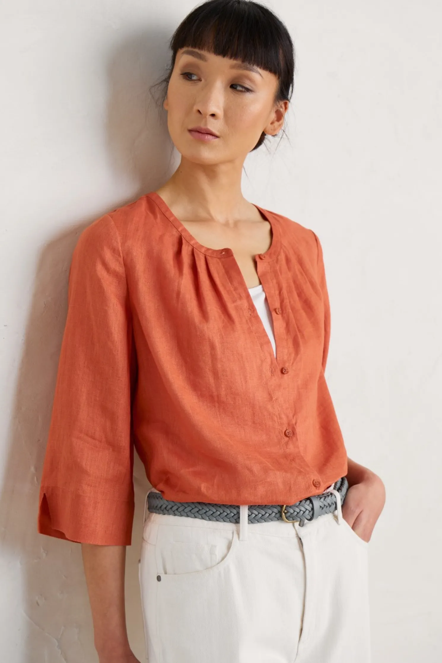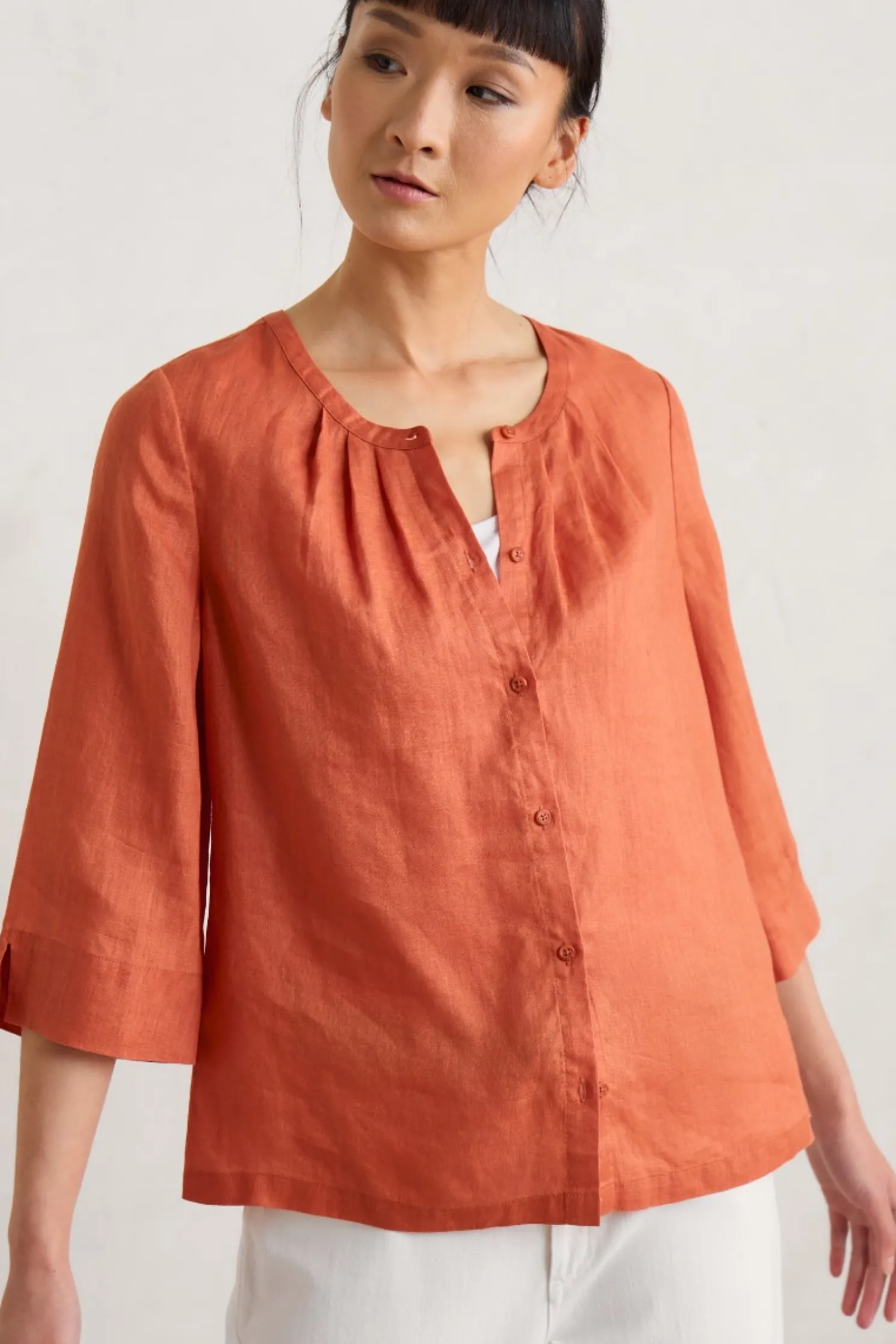 One Of Our Favourite, And Most Versatile, Layers For Summer: Wear As A Shirt, Tucked In Or Loose, Or Unbuttoned Over T-Shirts As A Lightweight Linen Cover-Up. Subtle Pintucks Under The Neckline Emphasise Its Easy, A-Line Fit.